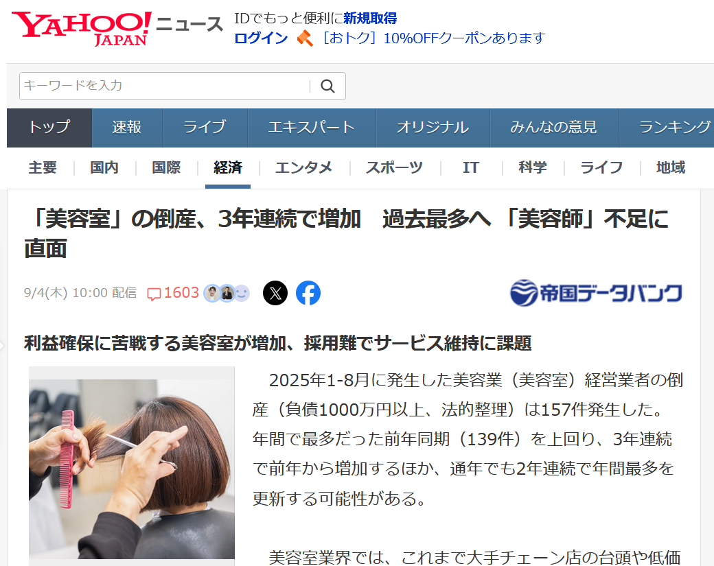美容室の倒産って色々要因があるんだけどさ。。これ、わりとちょくちょく同じような内容をブログでも書いてるんだけど、、この人口減少社会でアホみたいにお店ばかりが増え続けてるのが問題なんだよね。あ、ウチもお店増やしてる。。アホなのか。。。。