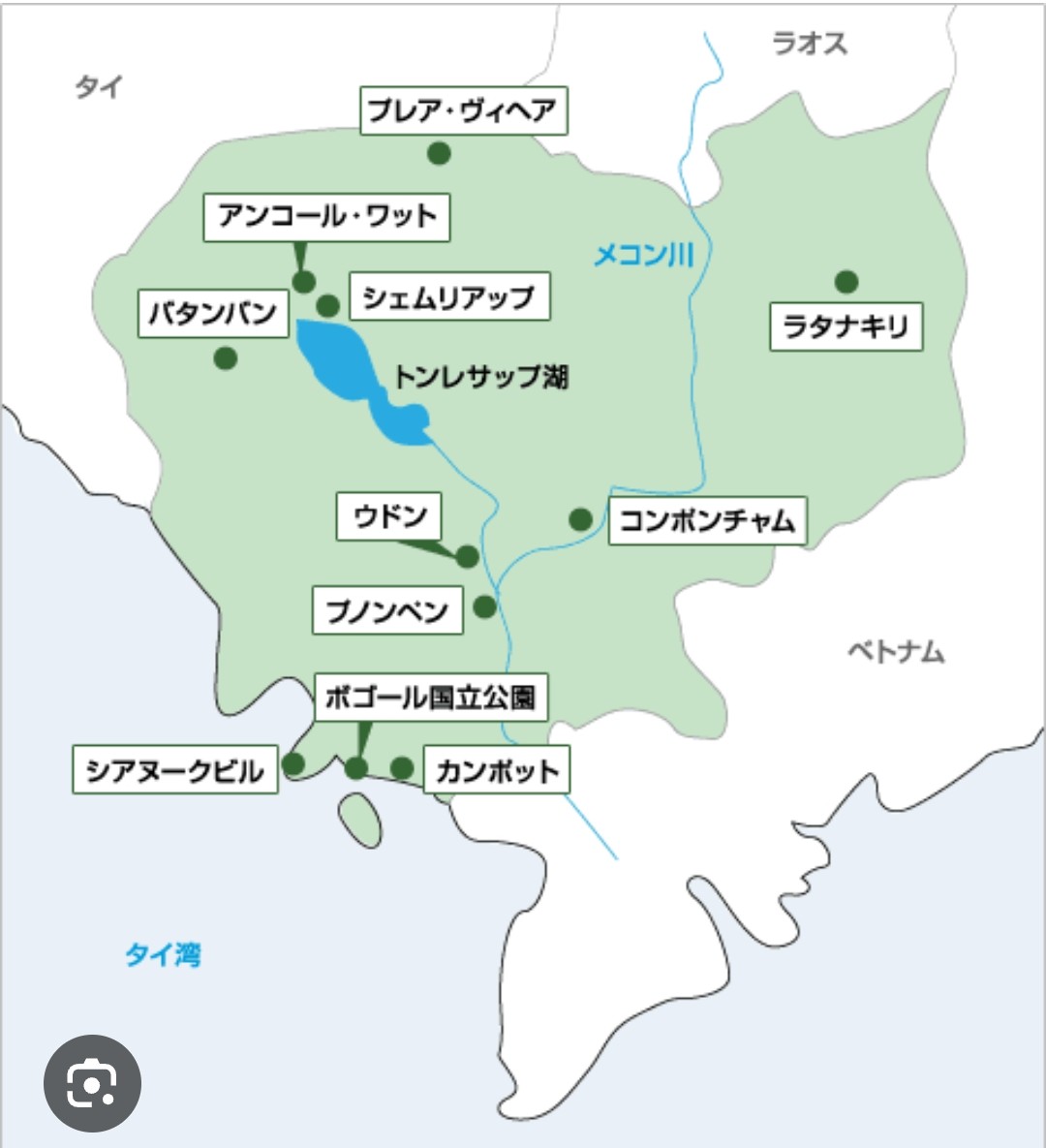 ちなみにカンボジア。首都はプノンペン。↑地図の下の方です。アンコールワットのあるシェムリアップは左上の方。最近だと港湾都市のシアヌークビルなんかもビーチだったりカジノだったりで有名だよねぇ。